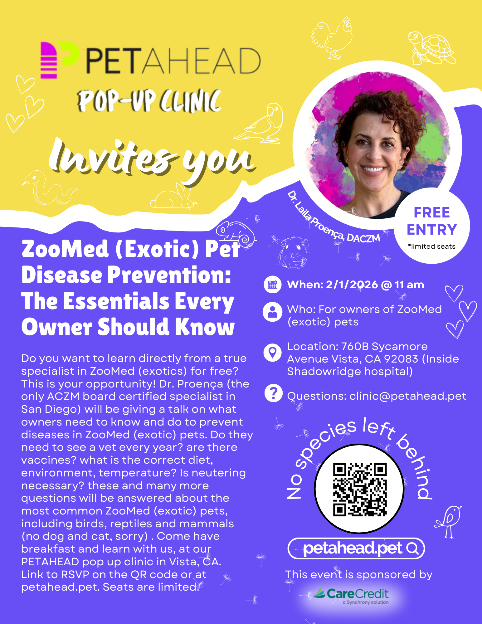 Please attend this informative ZooMed presentation (seating is limited) and welcome Dr. Proenca into her new practice!